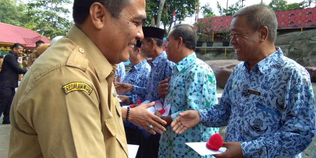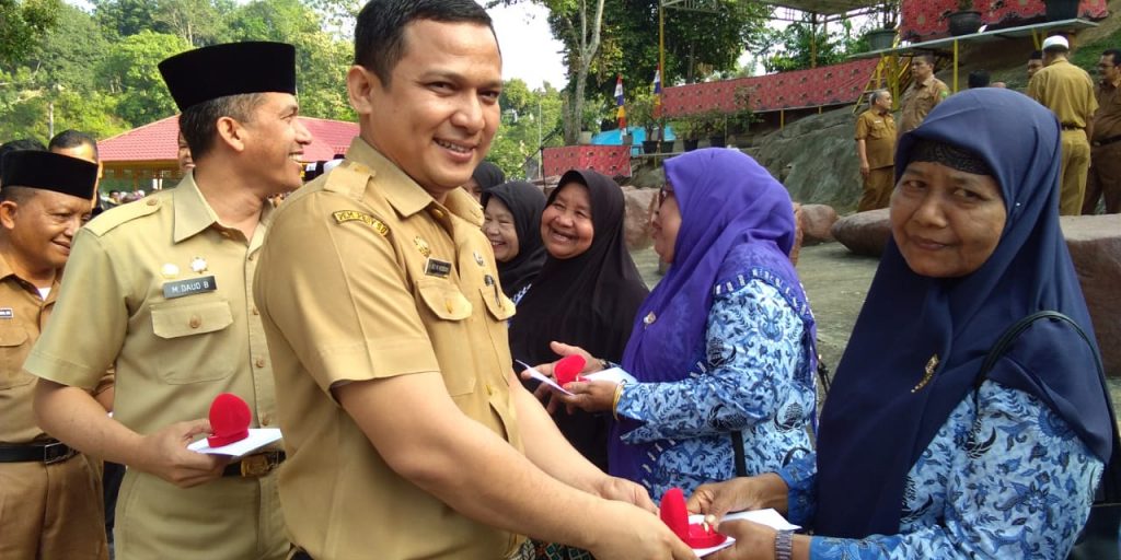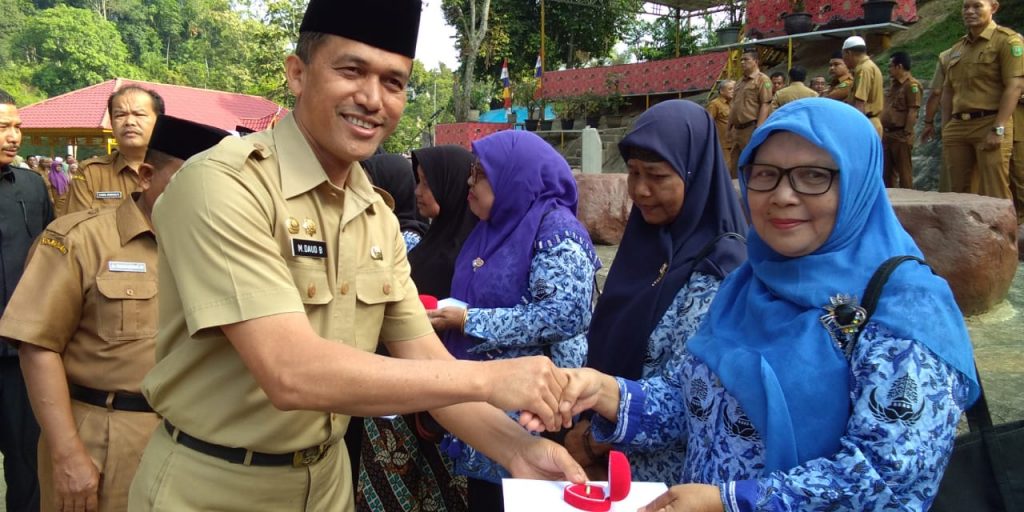 Diskominfo – Madina. Bupati Mandailing Natal Drs. H. Dahlan Hasan Nasution di wakili oleh Staf Ahli Bidang Pemerintahan dan Hukum Dr. M. Daud Batubara, M.Si dalam rangka “Apel Gabungan dan Penyerahan Cinderamata Bagi Purna Dinas Anggota KORPRI Kabupaten Mandailing Natal Tahun 2019” di Taman Raja Batu Komplek Perkantoran Payaloting Panyabungan Kabupaten Mandailing Natal. Senin (18/11/2019).