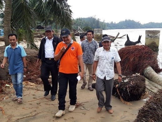 Tim yang dipimpin oleh Kasi Kesiapsiagaan BPBD Kabupaten Mandailing Natal didampingi BPD dan Pemerintah Desa Tabuyung melakukan pengecekan dan penyisiran disepanjang garis bibir pantai yang terdampak abrasi dan melihat kerusakan lainnya akibat terjangan ombak besar lautan Pantai Barat Mandailing Natal Sumatera Utara.