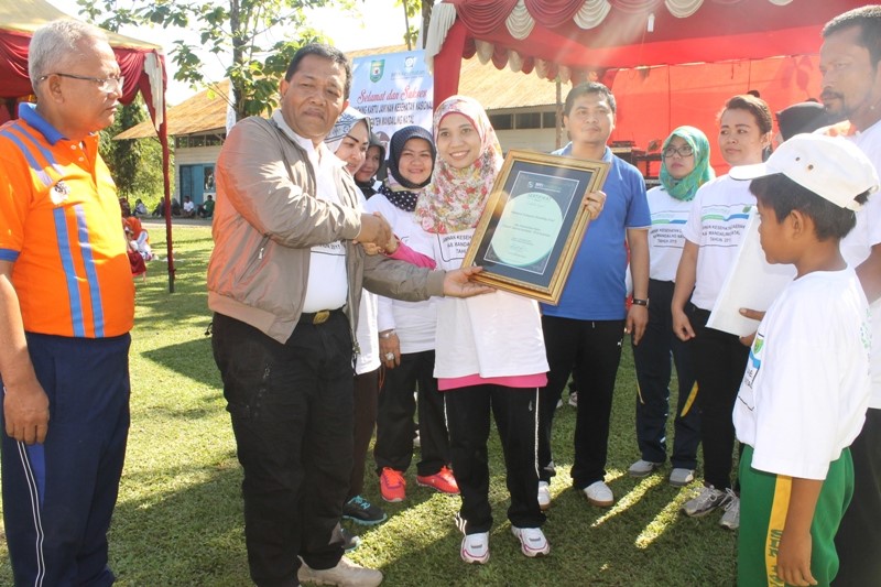 “Dr. Sari Quratulaini menyerahkan sertifikat kepada Bupati Madina Drs. H. Dahlan Hasan Nst didampingi Istri Ny. Ika Desika Dahlan Hasan sebagai wujud atas keikutsertaan Pemkab Madina dalam Program Jaminan Kesehatan – BPJS Kesehatan.