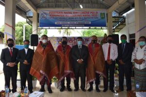 Bupati Mandailing Natal (Madina), Drs H Dahlan Hasan Nasurion didampingi OPD Madina menghadiri perayaan Natal Oikoumene PGI-D dan sekaligus sidang raya PGI-D Madina periode 2020-2025 di Gereja HKBP Kelurahan Kayu jati Kecamatan Panyabungan, Selasa (29/12/2020).