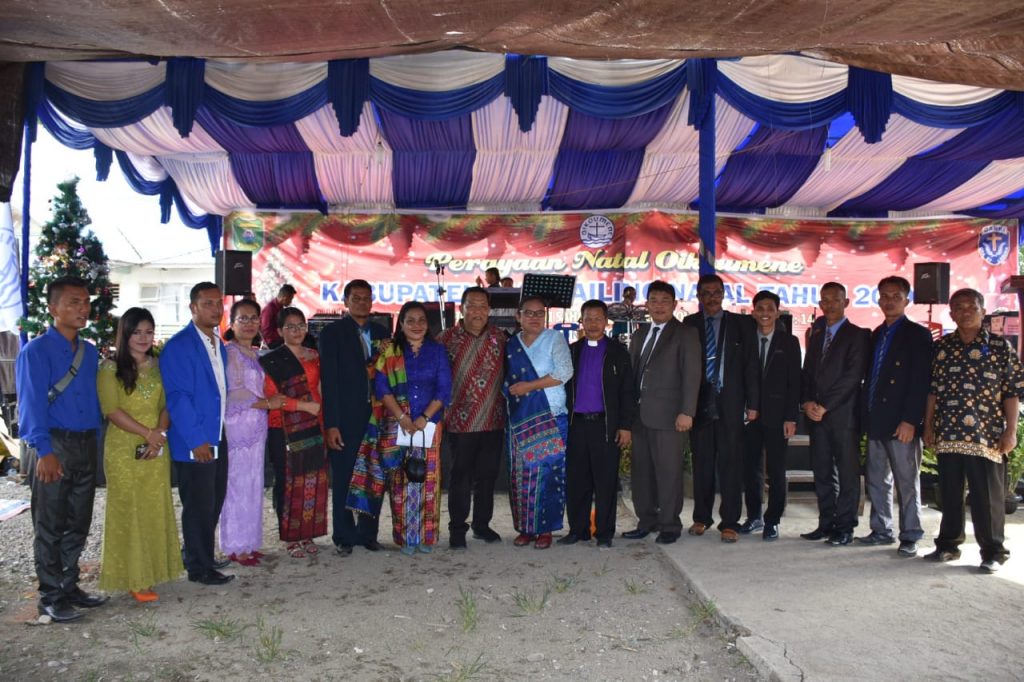 Diskominfo – Madina. Bupati Mandailing Natal Drs. H. Dahlan Hasan Nasution menghadiri Perayaan Natal Oikumene di Desa Simanondong Kecamatan Panyabungan Utara Kabupaten Mandailing Natal. Senin, 30/12/2019.
