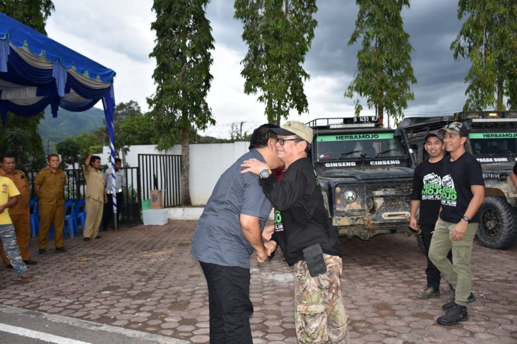 Turut hadir menyambut kedatangan tim offroader Herba Mojo Jelajah Alam, Plt Sekda Madina Sahnan Batubara, Ketua TP PKK Madina Ny Ika Desiska Dahlan Hasan, Para Asisten, dan kepala Opd.