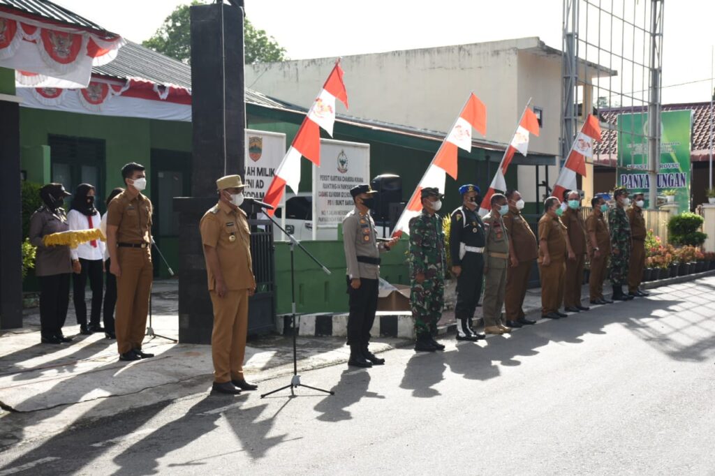 Panyabungan, – Bertempat di depan kantor Koramil 13 Panyabungan, Bupati Mandailing Natal, H. Muhammad Jafar Sukhairi Nasution memimpin apel bersama Forum Koordinasi Pimpinan Daerah (Forkopimda) tentang pelaksanaan kegiatan Pemberlakuan Pembatasan Kegiatan Masyarakat (PPKM) Level 2 sekaligus pembagian masker dan edukasi terhadap masyarakat, Senin (02/08/2021).