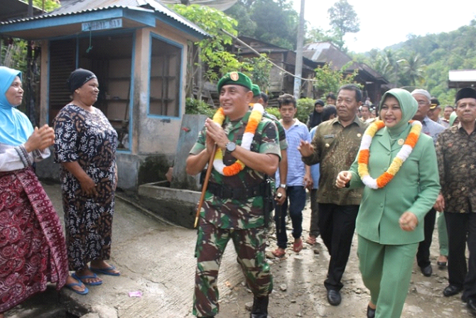 Panyabungan, Sumut 23/3 – Bupati Mandailing Natal Drs. H. Dahlan Hasan Nasution didampingi istri Ny. Ika Desika Dahlan Hasan Nasution bersama warga menyambut kunjungan Pangdam I/BB Mayjen. TNI Edy Rahmayadi beserta istri Ny. Nawal Edy Rahmayadi pada hari Senin di Desa Pagur Kec. Panyabungan Timur Kab. Madina.