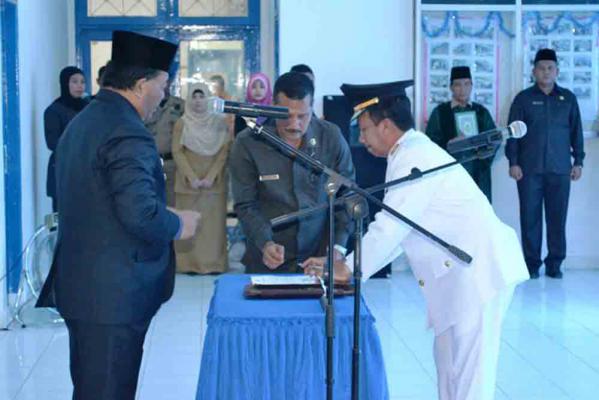 Bupati Mandailing Natal (Madina) Drs. H. Dahlan Hasan Nasution melantik Imron Lubis menjadi Wakil Bupati Madina hingga akhir masa jabatan Tahun 2016 di Aula Kantor Bupati Komplek Perkantoran Payaloting, Rabu (11/2/2015).