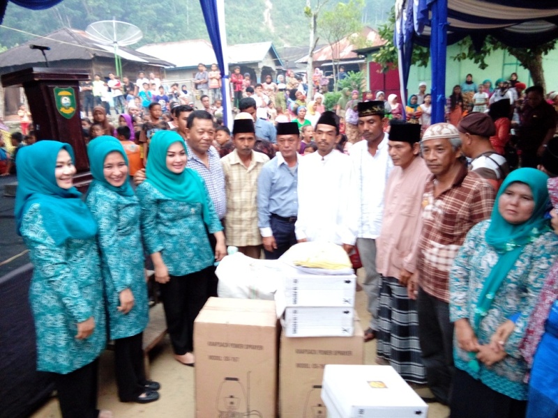 Panyabungan 18/9 – Bupati Madina Drs H Dahlah Hasan Nst didampingi Ketua Tp-pkk Madina Ny Ika Desika Dahlan Hasan bersama Ketua DPC PDI Perjuangan Madina Iskandar Hasibuan yang juga sebagai tokoh masyarakat Desa Malintang Julu beserta Pimpinan SKPD menyerahkan bantuan peralatan Pertanian dan keperluan persatuan wirid pengajian perempuan Desa Malintang Julu Kecamatan Bukit Malintang, Jum.at.