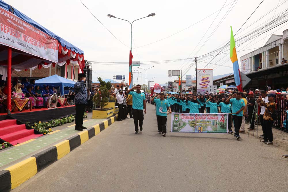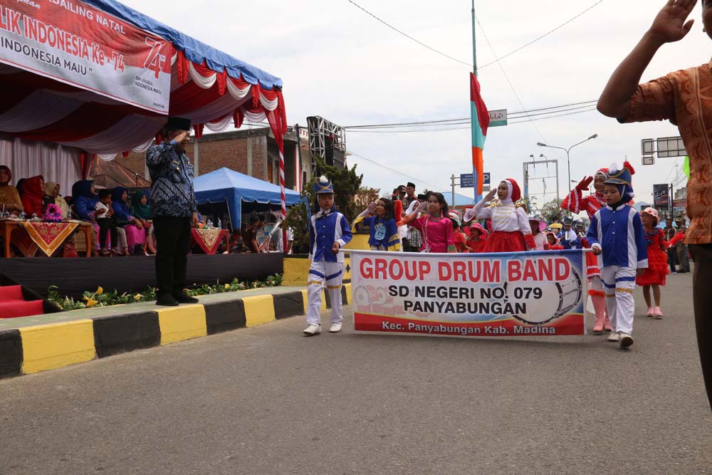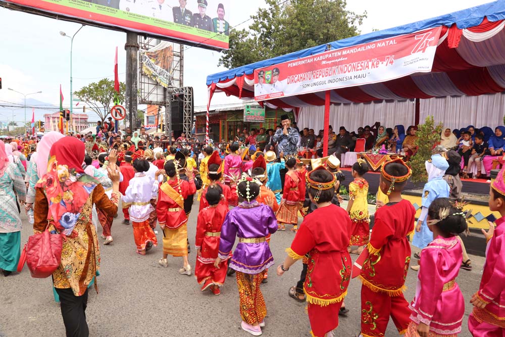 Memperingati dirgahayu Republik Indonesia ke-74 ini Pemerintah Kabupaten Mandailing Natal melakukan pawai karnaval yang diikuti oleh peserta dari seluruh pelajar se-Kabupaten Mandailing Natal, perwakilan dari Dinas di lingkungan Pemerintah Kabupaten Mandailing Natal dan lapisan masyarakat yang ikut serta memeriahkan acara. Untuk acara pawai karnaval, start dari Depan Kantor KPUD Mandailing Natal Kelurahan Kayu Jati dan Finish di Pasar Baru Panyabungan.