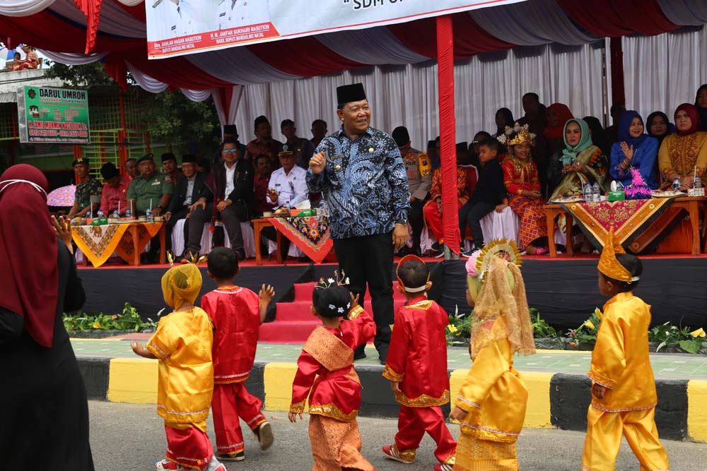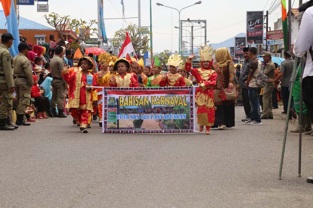 Dalam pawai tersebut para peserta karnaval selain menampilkan berbagai macam attraksi di depan panggung kehormatan juga diwarnai dengan pawai pakaian adat Bhinneka Tunggal Ika, barisan karnaval profesi, hingga pemberian bingkisan kepada Bupati Mandailing Natal, Drs. H.Dahlan Hasan Nasution.