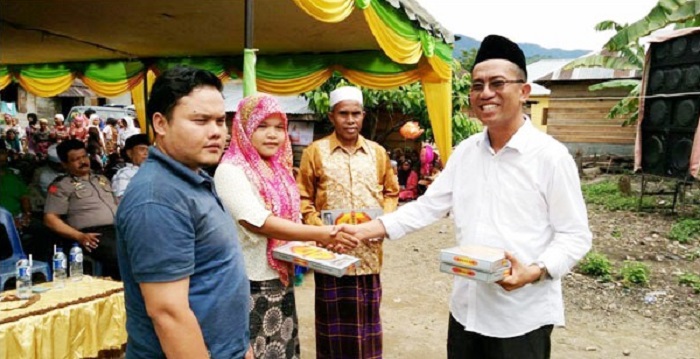 PANYABUNGAN – Calon Bupati Mandailing Natal nomor urut 1, Drs HM Yusuf Nasution,M.Si memberikan bingkisan kepada beberapa orang guru di Desa Lumban Dolok, Kecamatan Siabu, Rabu (25/11).