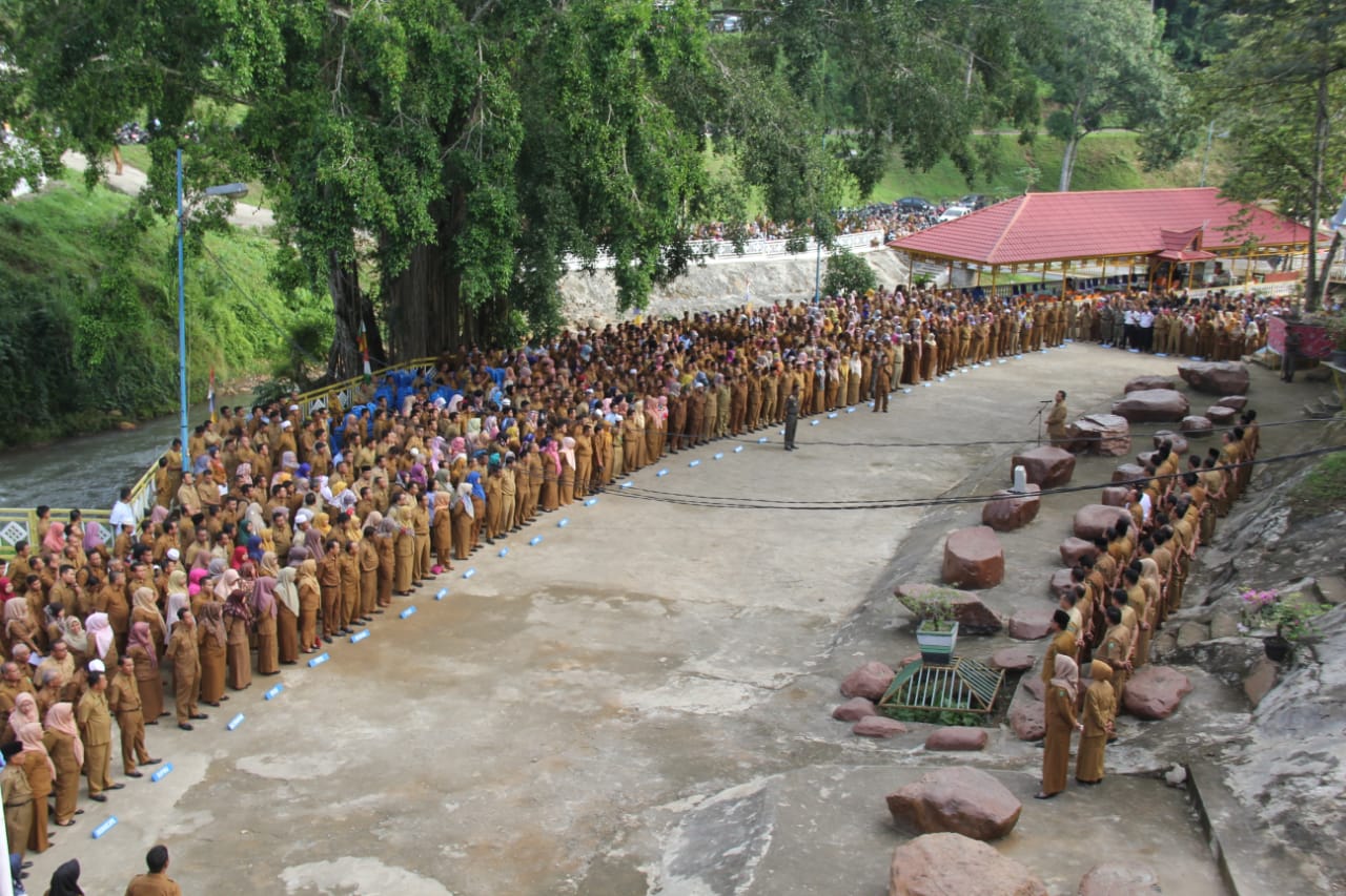 Diskominfo – Madina. Hari pertama masuk kerja pasca libur Lebaran, Bupati Mandailing Natal, Drs. H. Dahlan Hasan Nasution, memimpin langsung Apel Gabungan pada Senin, 10 Juni 2019, di Taman Raja Batu (TRB), Komplek Perkantoran Payaloting, yang diikuti oleh Pimpinan OPD, seluruh ASN dan honorer di lingkungan Pemkab Mandailing Natal.