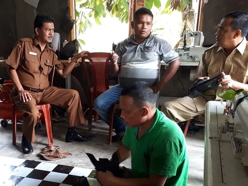Diskominfo – Madina. Kunjungan Kepala Dinas Informasi dan Komunikasi Kab. Mandailing Natal Drs. M. Sahnan Pasaribu, MM dan Sekretaris Dinas Informasi dan Komunikasi Kab. Mandailing Natal Asmara Hadi, S.Pd ke lokasi Industri Rumahan (Home Industri) Pembuatan Sepatu Kulit di Desa Simalagi Kec. Hutabargot Kab. Mandailing Natal yang bersumber dari Dana Desa dalam rangka Bursa Inovasi Desa untuk Meningkatkan Perekonomian Masyarakat. Selasa, 15/10/2019.