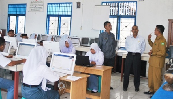 PANYABUNGAN – Komisi I DPRD Mandailing Natal meninjau pelaksanaan Ujian Nasional di beberapa sekolah di Panyabungan, Senin, (4/4).