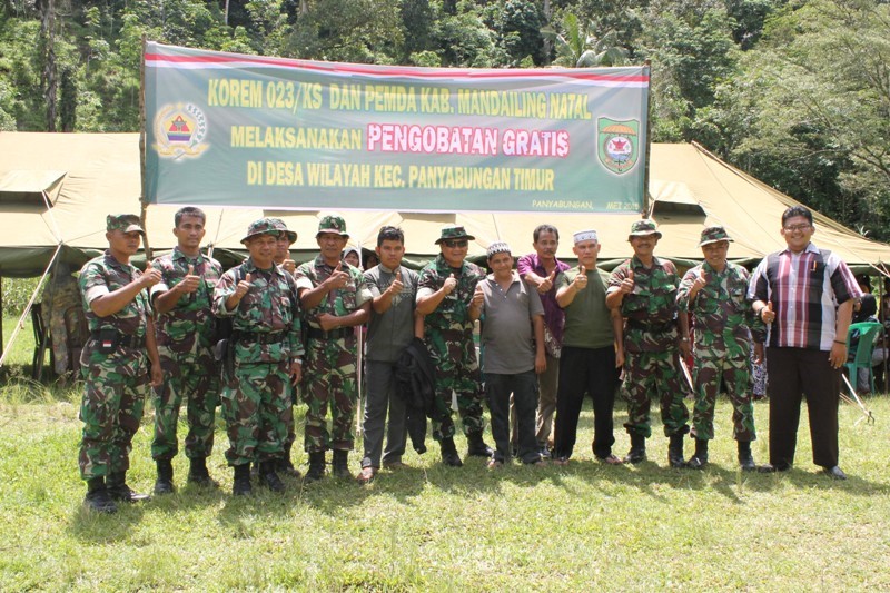Panyabungan 15/5 – Komando Resort Militer (Korem) 023 Kawal Samudera bekerja sama dengan Pemkab Madina mengadakan pengobatan gratis tepatnya di Desa Sirangkap Kec Panyabungan Timur Kab Madina, Jum’at.
