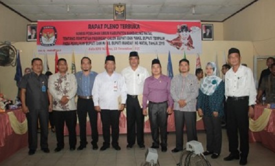 Penetapan tersebut dilaksanakan melalui Rapat Pleno Terbuka penetepan Pasangan Calon Bupati dan Wakil Bupati Terpilih untuk periode 2016-2021 dalam Pemilihan Bupati dan Wakil Bupati Mandailing Natal tahun 2015 yang berlang sung Aula KPU Madina, Selasa (22/12).