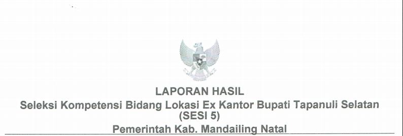Berikut rekap hasil nilai Seleksi Kompetensi Bidang Lokasi Ex. Kantor Bupati Tapanuli Selatan CPNS Pemerintah Kabupaten Mandailing Natal T.A 2019.
