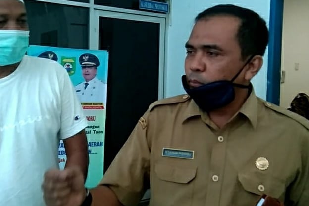 Kepala Dinas Komunikasi dan Informatika Kabupaten Mandailing Natal Drs. M. Sahnan Pasaribu, MM usai menghadiri rapat terkait Pasca penetapan Pembatasan Sosial Berskala Besar (PSBB) di wilayah Provinsi Sumatera Barat (Sumbar) di Aula Kantor Bupati Komplek Perkantoran Payaloting Panyabungan Kab. Mandailing Natal. Selasa, 28/4/2020.
