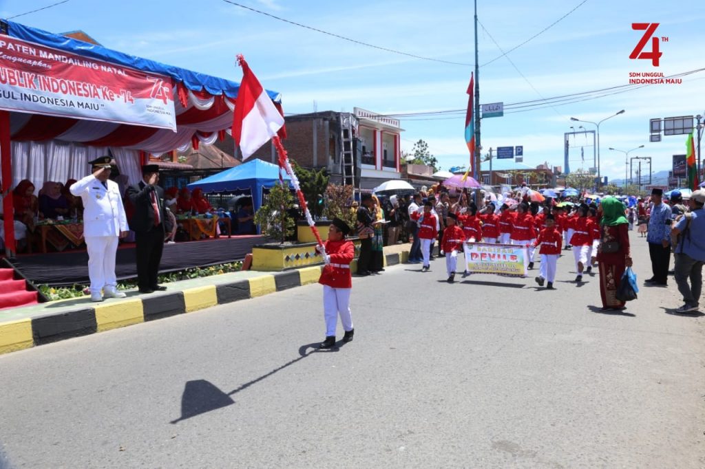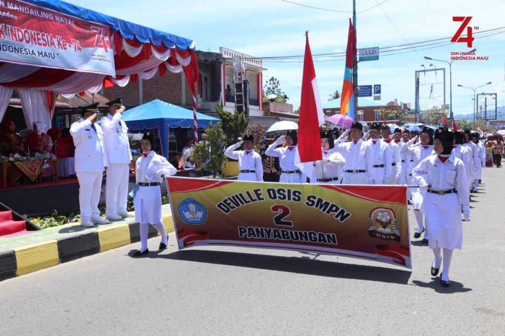 Diskominfo – Madina. Panyabungan, Sabtu (17/08/2019) Parade defile dalam rangka memeriahkan peringatan hari kemerdekaan Republik Indonesia ke-74 tahun 2019 dimulai dari Depan Kantor KPUD Mandailing Natal Kelurahan Kayu Jati dan Finish di Pasar Baru Panyabungan. Peserta defile diikuti oleh OPD Pemerintah Kabupaten Mandailing Natal , pelajar dari tingkat Sekolah Dasar (SD), Sekolah Menengah Pertama (SMP), Sekolah Menengah Atas/ Kejuruan (SMA/SMK). Acara parade defile ini mendapat antusias dari masyarakat Mandailing Natal, ini terlihat masyarakatdari memenuhi sepanjang jalan protokol.