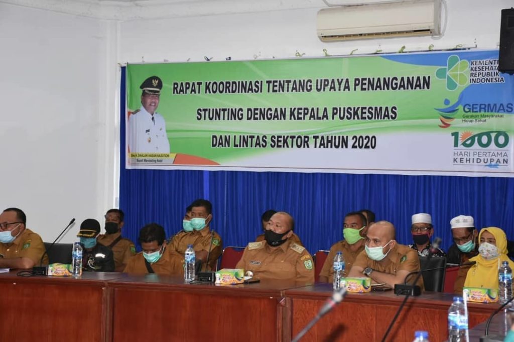 DISKOMINFO-MADINA. Dalam rangka mendukung upaya percepatan pencegahan dan penurunan stunting di Kabupaten Mandailing Natal, Badan Perencanaan Pembangunan Daerah (Bappeda) dan Dinas Kesehatan Kabupaten Mandailing Natal bekerjasama menggelar rembuk stunting tahun 2020 di Aula Bupati Mandailing Natal. Senin (22/6/2020).