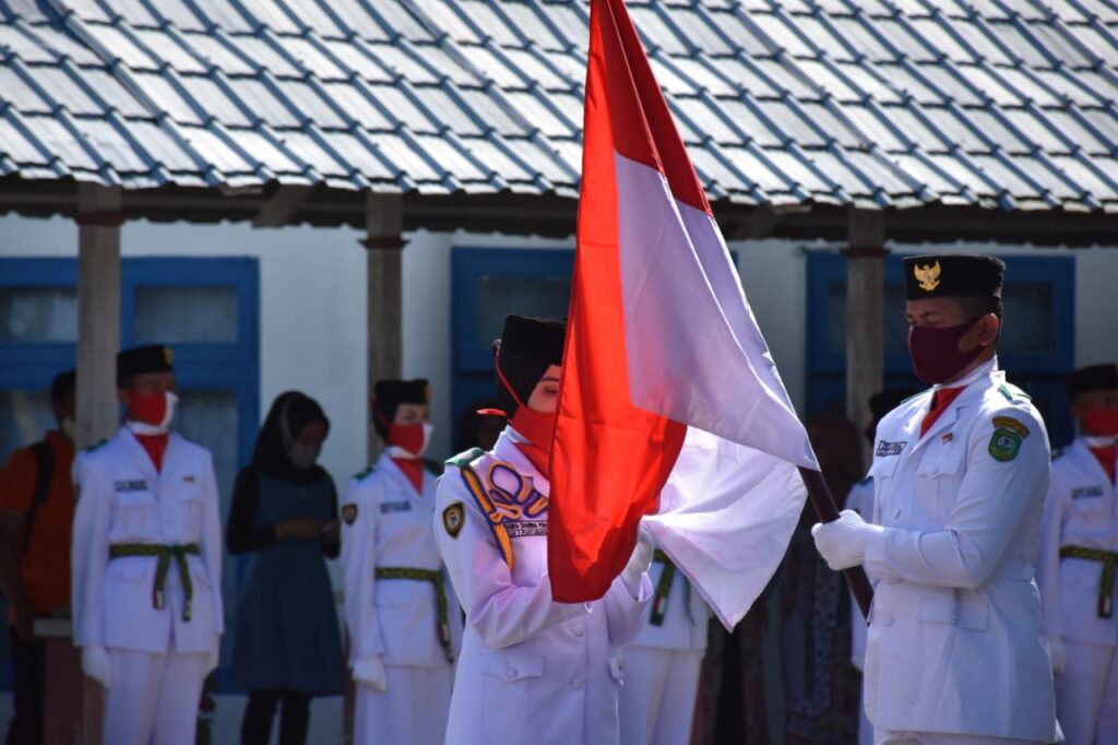 Anggota Pasukan Pengibar Bendera (Paskibraka) yang akan bertugas mengibarkan Bendera Merah Putih pada Upacara Hari Ulang Tahun (HUT) RI ke – 75 di Blok C Taman Raja Batu, 17 Agustus 2020 Sebanyak 34 Orang .
