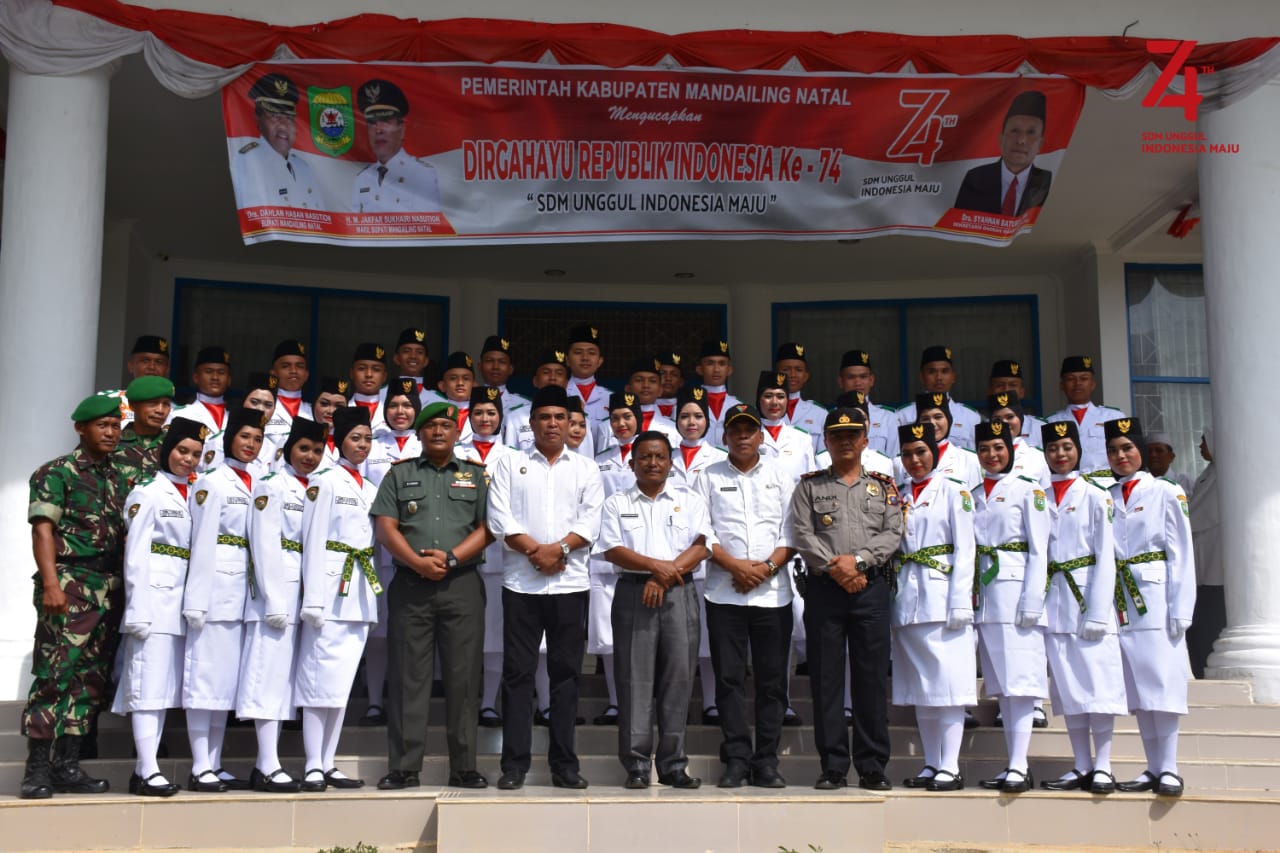 Dalam sambutan Wakil Bupati Mandailing Natal, H. M. Jakfar Sukhairi Nasution ” Atas nama pribadi, masyarakat dan Pemerintah Kabupaten Mandailing Natal mengucapkan selamat kepada ananda paskibraka, yang mendapat amanah dan kehormatan sebagai pasukan pengibar bendera di hari ulang tahun Republik Indonesia yang ke-74 tingkat Kabupaten Mandailing Natal, sebagaimana ikrar yang sudah diucapkan serta propesi cium bendera merah putih perlu ditanamkan bahwa paskibra tidak boleh berhenti pada momentum peringatan HUT RI ke-74 Kemerdekaan Republik Indonesia tahun 2019 ini saja” Rabu (14/08/2019)
