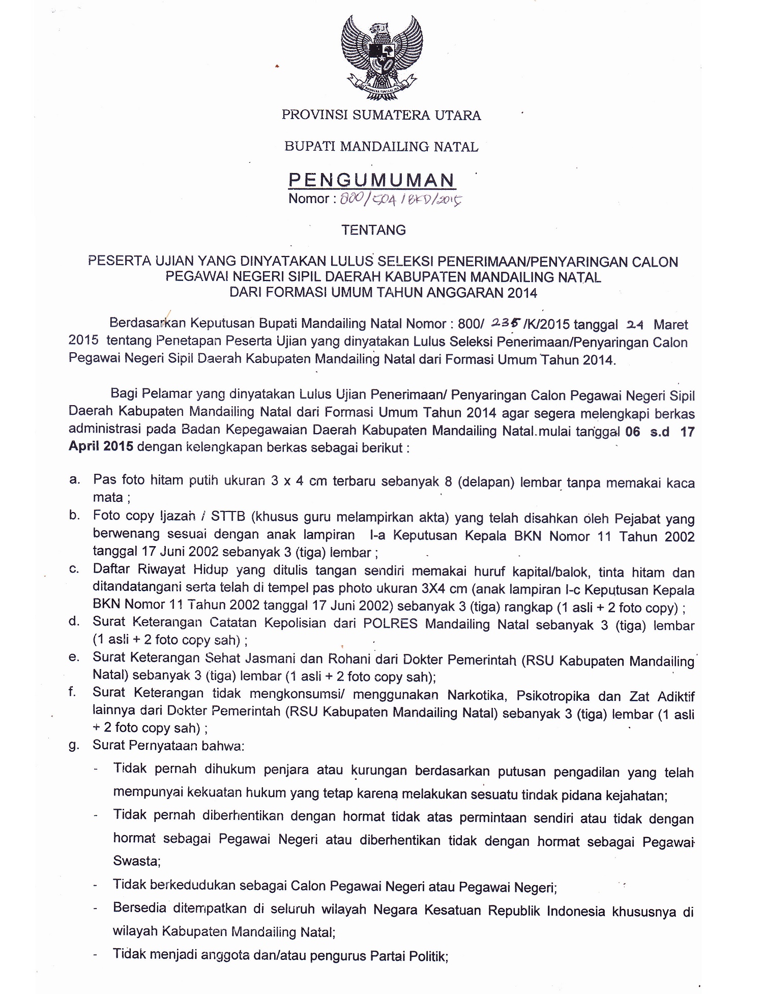 INFORMASI LENGKAP dan DAFTAR NAMA PESERTA YANG DINYATAKAN LULUS