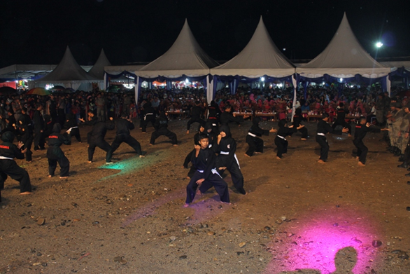 Panyabungan, Sumut 13/3 – Perguruan Pencak Silat Penjuru Angin dibawah asuhan Bupati Madina Drs. H. Dahlan Hasan Nasution turut meriahkan HUT Ke-16 Madina, Rabu 11 Maret pada penutupan pameran pembangunan Mandailing Natal.
