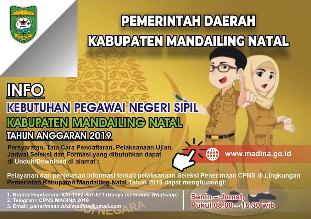 Berkenaan dengan diterbitkannya Peraturan Menteri Pendayagunaan Aparatur Negara dan Reformasi Birokrasi Nomor 23 Tahun 2019 tentang Kriteria Penetapan Kebutuhan PNS dan Pelaksanaan Seleksi CPNS Tahun 2019 – Distribusi II, dimana terdapat perubahan pada Huruf F angka 4 tentang ketentuan persyaratan umum dan huruf J angka 3 tentang Pengumuman lowongan dan Sistem Pendaftaran, dengan ini disampaikan bahwa terdapat ketentuan dalam pengumuman Bupati Mandailing Natal tentang Kebutuhan PNS di lingkungan PEMDA Mandailing Natal T.A 2019 yang memerlukan penyesuain sebagaimana berikut :