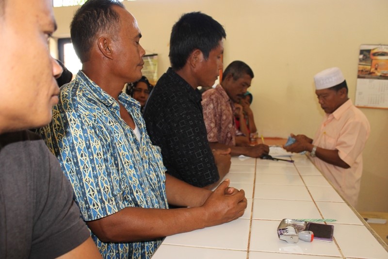Panyabungan 18/4 – Ratusan Warga Kec. Siabu Kab. Mandailing Natal terima bantuan pemerintah pada tahap pertama Program Simpanan Keluarga Sejahtera (PSKS) di Kantor Pos Kec. Siabu Kab. Madina Panyabungan, Sabtu.