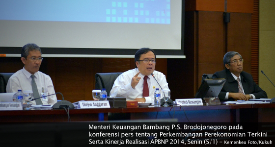 Jakarta, 06/01/2015 Kemenkeu – Berdasarkan perkembangan indikator ekonomi makro tahun 2014, kinerja realisasi Anggaran Pendapatan dan Belanja Negara Perubahan (APBN-P) 2014 dapat tetap dijaga pada tingkat yang aman.