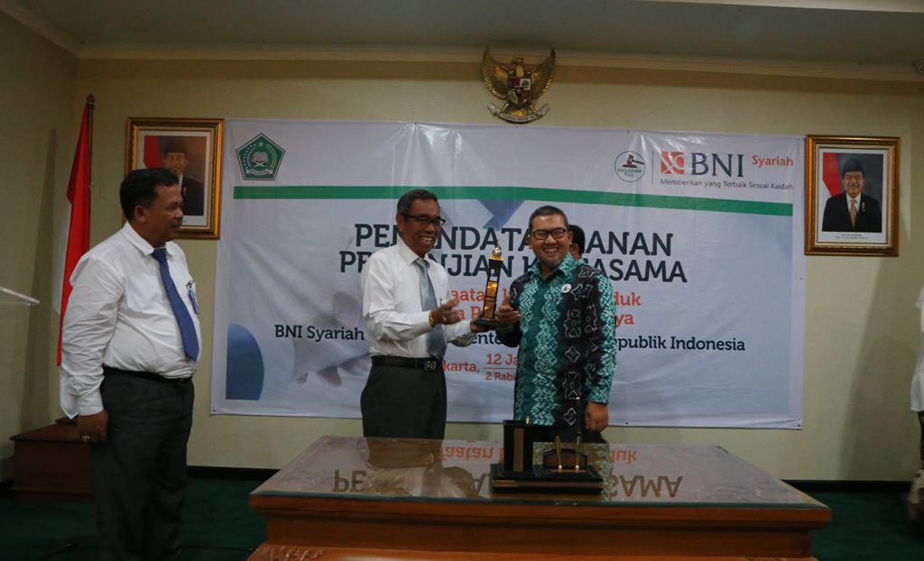 dalam Pemanfaatan Layanan Produk dan Jasa Perbankan Lainnya, di Gedung Kemenag, Jakarta, Selasa (12/1) sore.