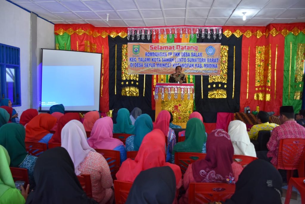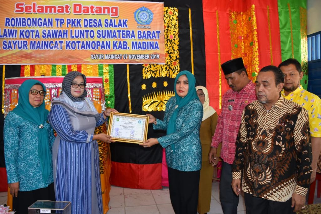 Diskominfo – Madina. TP PKK Desa Salak Kecamatan Talawi Kota Sawah Lunto Provinsi Sumatera Barat tiba di Desa binaan TP PKK Kabupaten Mandailing Natal Desa Sayur Maincat Kecamatan Kotanopan Kabupaten Mandailing Natal. Kunjungan ini merupakan silaturarahmi sekaligus study banding TP PKK Desa Salak Kec.Talawi Kota Sawah Lunto ke Desa Sayur Maincat. Kamis (07/11/2019)
