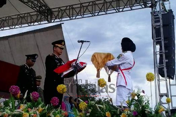 Jika pada upacara pengibaran Bendera Merah Putih di Kab, Madina bertindak sebagai Inspektur Upacara (Irup) Bupati Madina, Drs H Dahklan Hasan Nasution, kali ini pada upacara penurunan Bendera Merah Putih bertindak sebagai Irup, Kapolres Madina AKBP Madiaz Kusin Dwihananto, S.I.K., H.Hum.